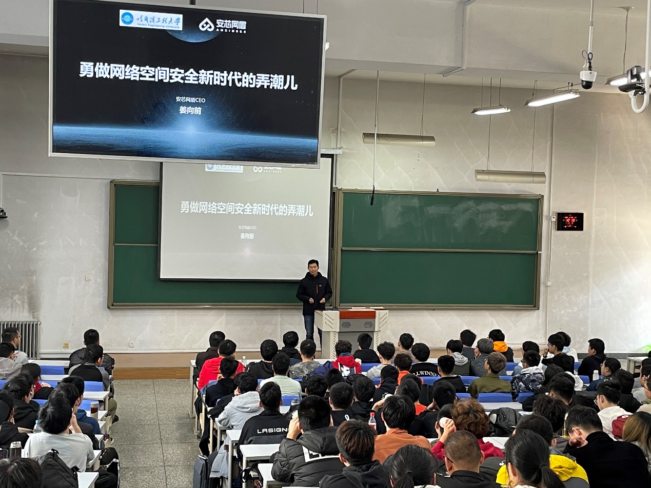 近日,pp电子游戏官网校友、安芯网盾创始人兼CEO姜向前受邀在我校1#N101做《勇做网络空间安全新时代的弄潮儿》的专题讲座,同时,安芯网盾与学校将挂牌成立联合实验室。