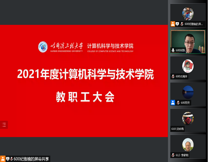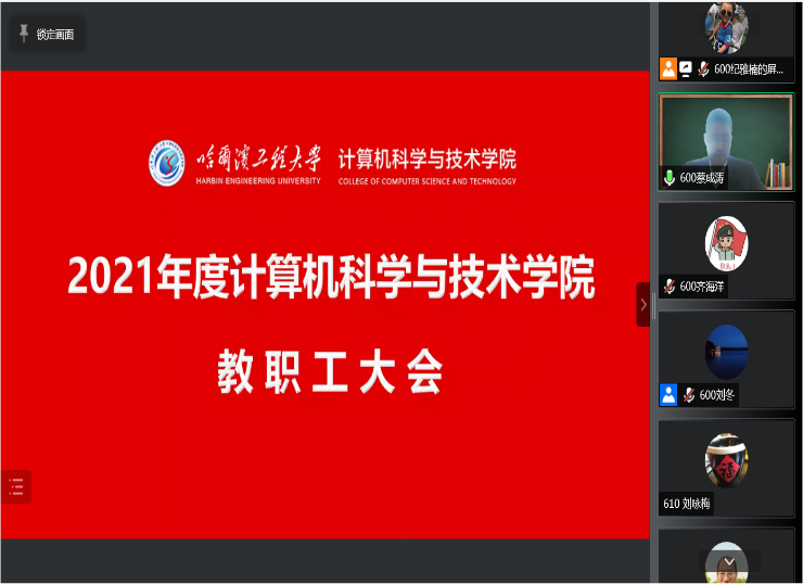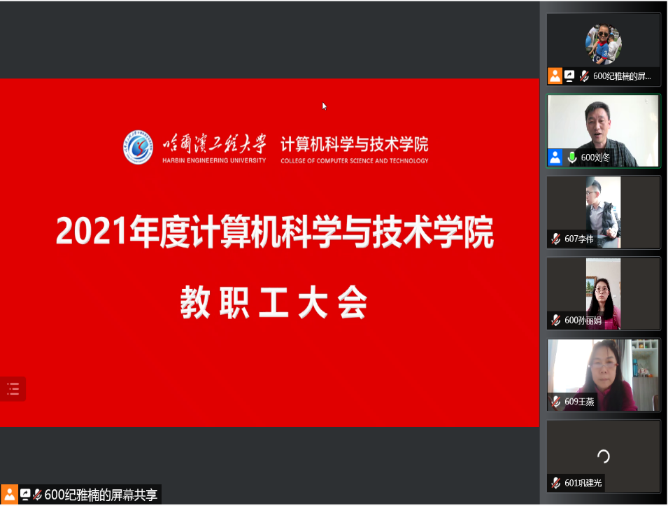 会议由学院党委书记刘冬同志主持召开,pp电子游戏官网院长蔡成涛,党委副书记刘正,副院长董宇欣、田凯、冯光升、王巍及全体教职工(包括合同二类、科研岗)参加会议,根据线上会议统计显示学院共有143位教工线上参会,占应参加会议职工总数的93.46%。