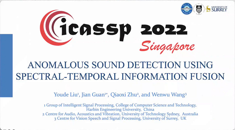 该论文入选音频信号处理领域顶级国际会议ICASSP 2022,是我校pp电子游戏官网嵌入式与物联网团队智能信号处理团队(Group of Intelligent Signal Process, GISP)与悉尼科技大学“音频声学与振动中心”及萨里大学“视觉语音信号处理中心”最新合作研究成果,提出了一种基于时频融合的自监督分类方法,通过时频域信息的融合互补,极大地提升了工业设备异常检测的性能和稳定性。