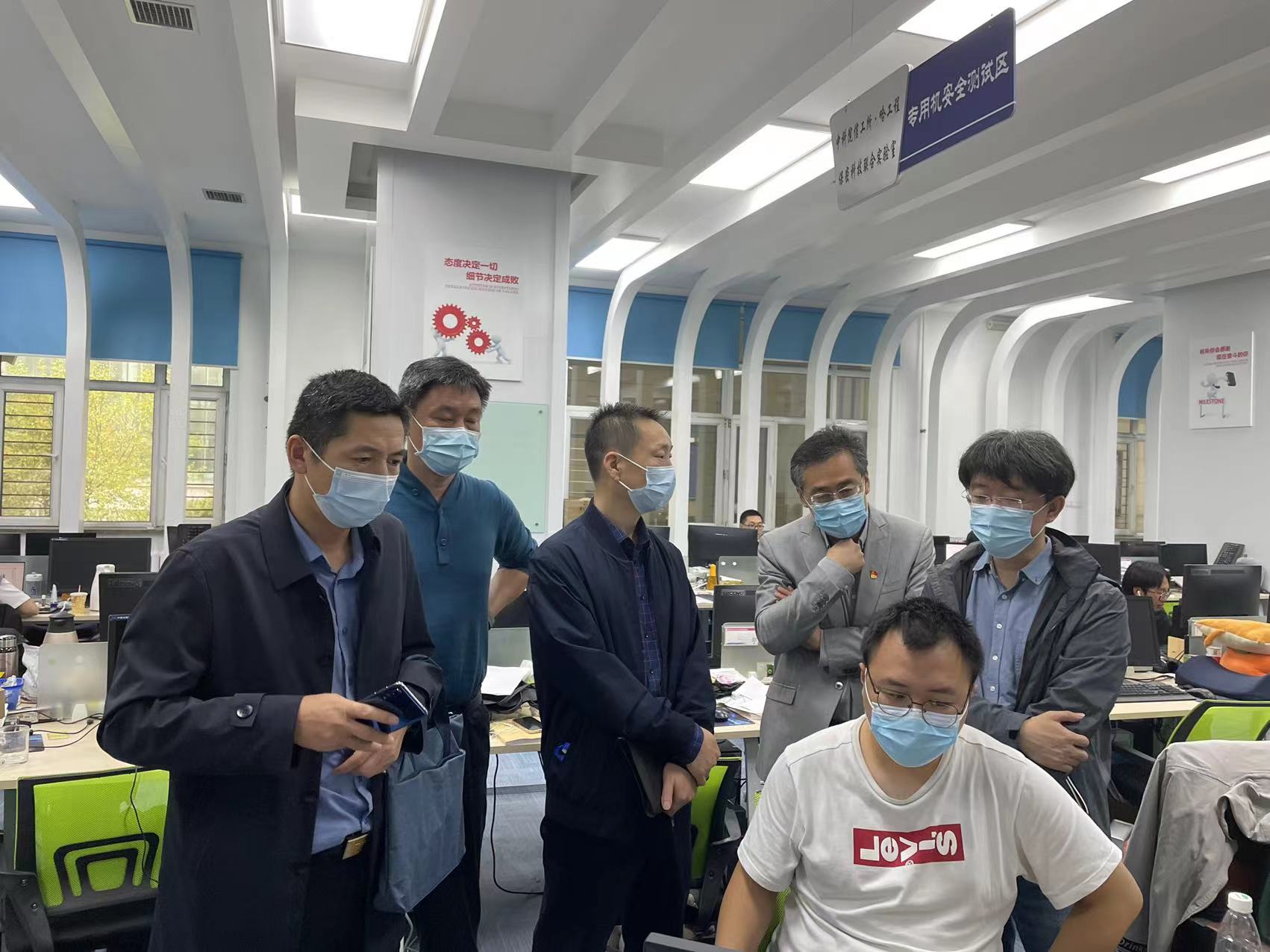 交流会议结束,刘冬书记带领相关教师陪同来访人员参观学院重点实验室。