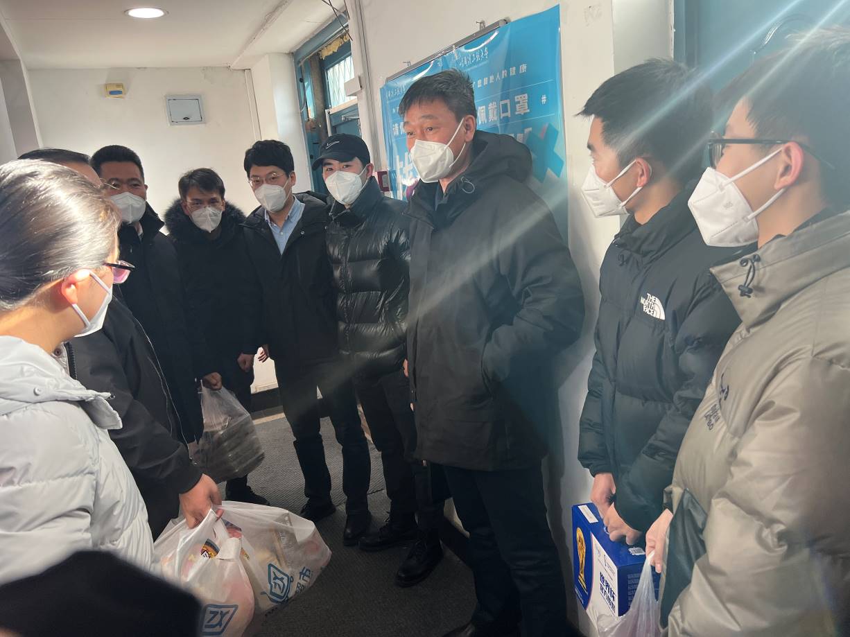 2022年12月15日11:30,党委书记刘冬、院长蔡成涛带领学院综合办公室负责人员,前往pp电子游戏官网34A教师公寓进行走访慰问疫情风控思政教师,贴心的为被风控教师带去了午餐、水果、牛奶、防疫口罩、体温计等物资,同风控教师进行了亲切的交谈,从实际出发了解被风控教师生活、工作情况。刘书记深切表达了对被风控教师的关怀,叮嘱大家一定要做好个人防护、注意身体健康。