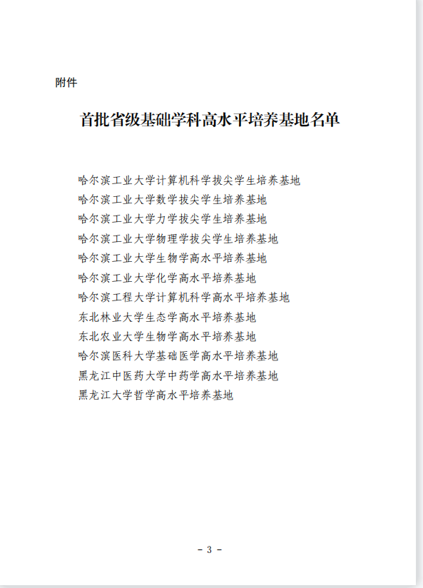 近日,在黑龙江省教育厅发布的《首批基础学科高水平培养基地名单的通知》中有12所高水平培养基地入选,我院“计算机科学高水平培养基地”榜上有名。