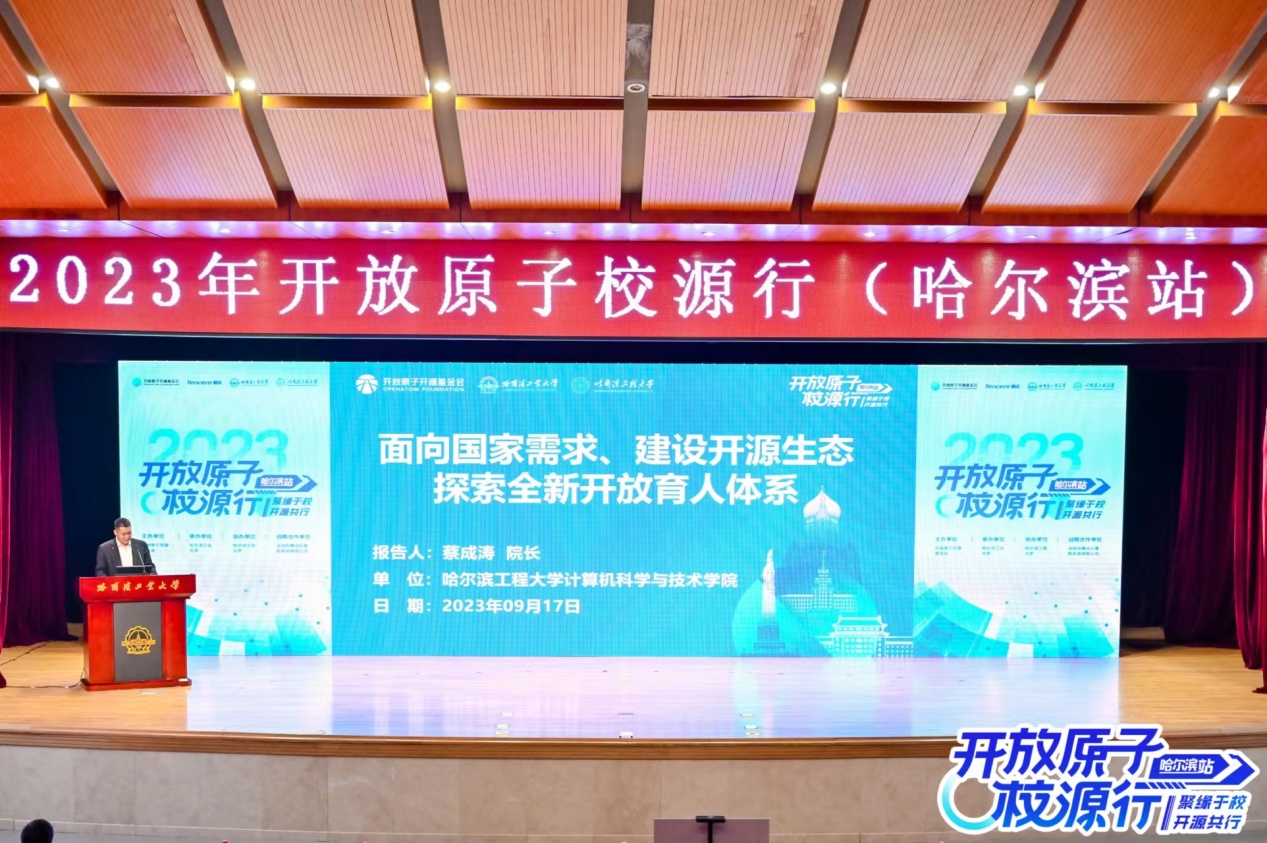 2023年9月17日,由工信部指导,开放原子开源基金会主办,哈尔滨工业大学承办,pp电子游戏官网协办“开放原子校源行”大会。工信部信息技术发展司副司长王威伟、开放原子基金会理事长孙文龙、哈尔滨工业大学副校长刘挺等领导参会并致辞。另有哈尔滨工业大学、pp电子游戏官网、电子科技大学、吉林大学、北京理工大学、华中科技大学、苏州大学、东北林业大学、黑龙江大学、哈尔滨理工大学和腾讯公司等相关领导和开源爱好者参会,大会参会人数达500余人,学院百余名开源学生爱好者参加了会议。会议同时采用线上直播形式同步播出。