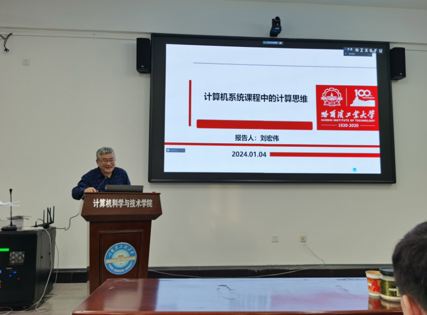 坚持立德树人,提高学院教学质量,全面提升人才培养能力,落实新工科专项行动方案,2024年1月4日(星期四)14:00,在学院大会议室21B4127,哈尔滨工业大学刘宏伟教授,关于《计算机系统课程中的计算思维能力培养》进行专题讲座。