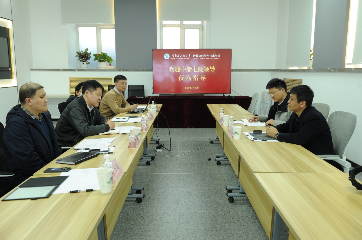 3月19日,中船集团科技委秘书处主任、中船七院未来发展研究中心创新部主任尹洪亮一行三人来学院进行工作调研,就科研项目合作、人才培养、技术创新与应用、行业趋势与市场需求、实验室共建与资源共享等内容进行了深入交流。pp电子游戏官网党委书记孙荣平、党委副书记兼副院长吴艳霞、副院长王巍、副院长苘大鹏、智能隐身计算研究中心主任张立国参加。