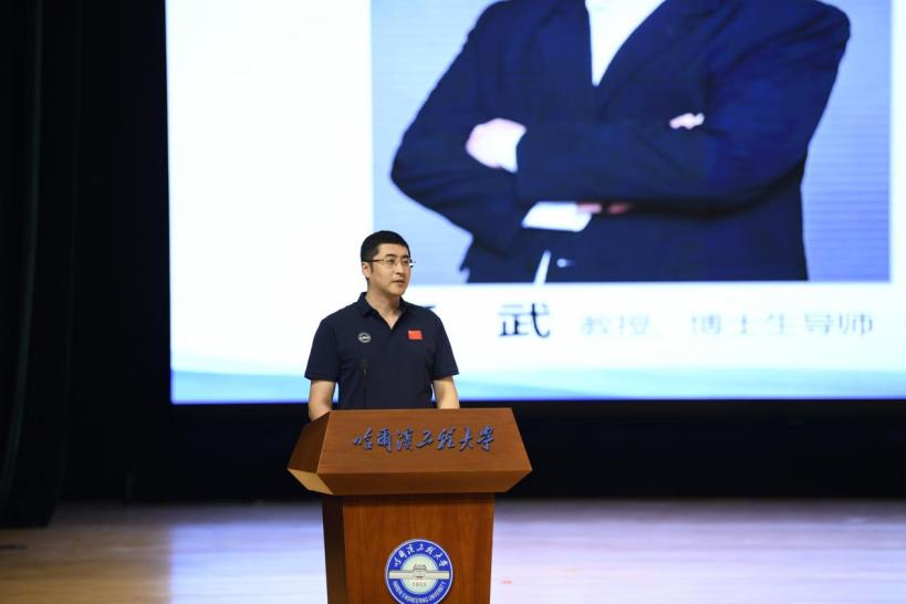 唐滨教授作为教师代表发言,他表示在课程学习、科研创新、工程实践是求真的底色,也是投身实干的战场,希望同学们在学习实践中夯实专业基础、锤炼意志品格,在充实而精彩的大学时光里成长为有本领、有担当、有情怀的哈工程计算机人。