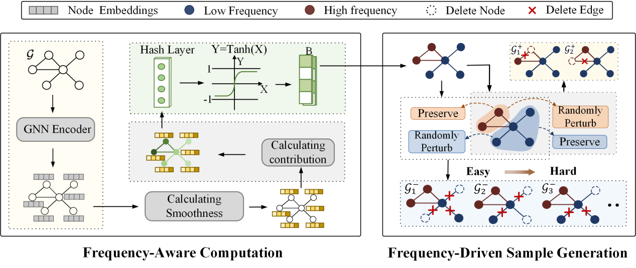 From Semantics to Spectrum: A New Lens on Graph Augmentation Strategy》由郑香平、郝秀鑫、吴博、李伟、任斌、唐滨、郭玉慧、梁循、於志文合作完成。针对现有图增强技术语义失真问题,论文提出低频信号为语义信息稳健载体的核心观点,构建频率感知图对比学习(FA-GCL)框架,通过频域分解指导图增强,并设计动态难度调整(DDA)模块生成递增难度负样本。该框架在多个真实场景基准测试中持续超越现有先进基线模型,具有统计学显著性提升。