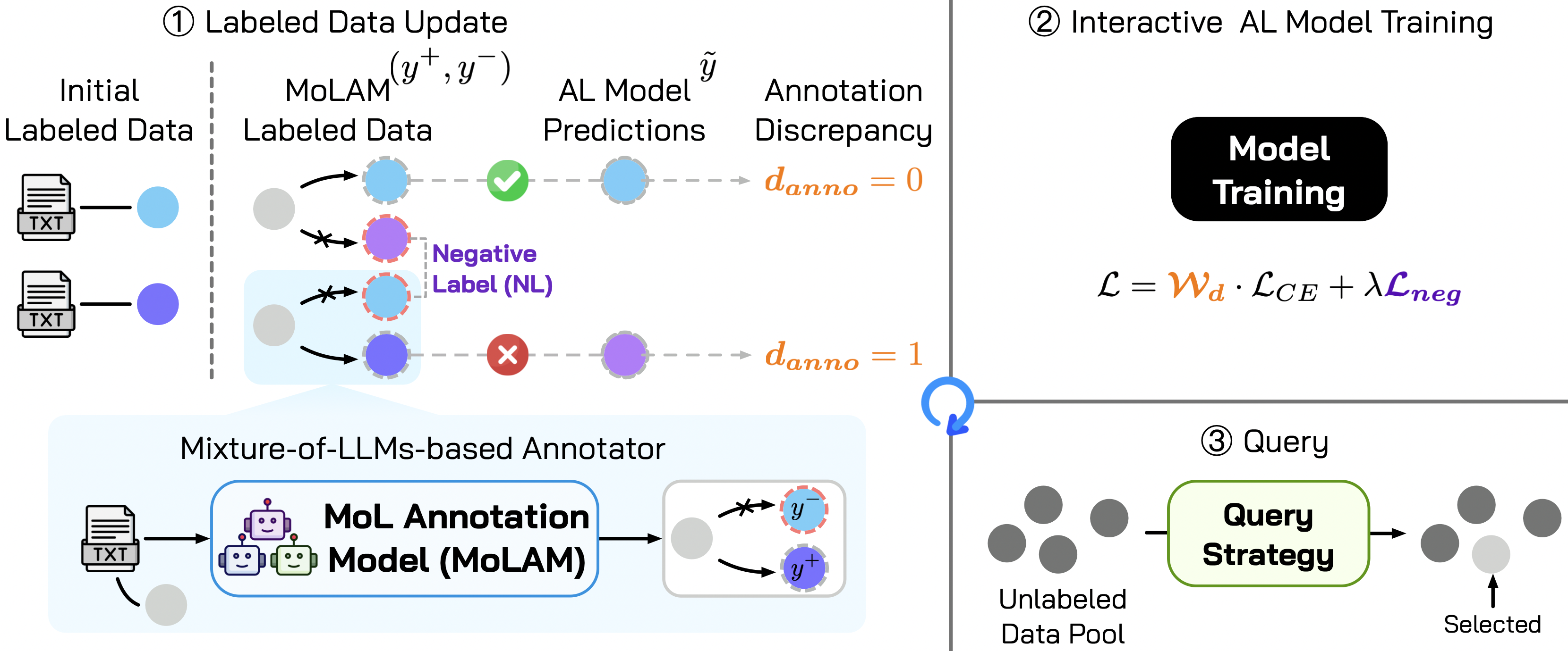 Next Generation Active Learning: Mixture of LLMs in the Loop》由齐媛媛、杨晓昊、卢觉庆、顾国祥、Joanne Enticott、刘刚、杜岚合作完成。论文聚焦主动学习框架革新,旨在解决大语言模型标注质量不足与噪声问题,提出 MoLAM 标注模型与鲁棒性优化机制,通过多轻量级 LLM 协同、伪标注增强、负标签识别及负学习等技术提升标注可靠性。该框架在四个基准数据集上实现零人工标注,性能与传统人工标注相当,标注准确率与噪声鲁棒性显著提升,且具备轻量化部署优势。